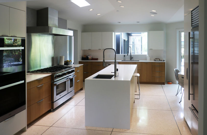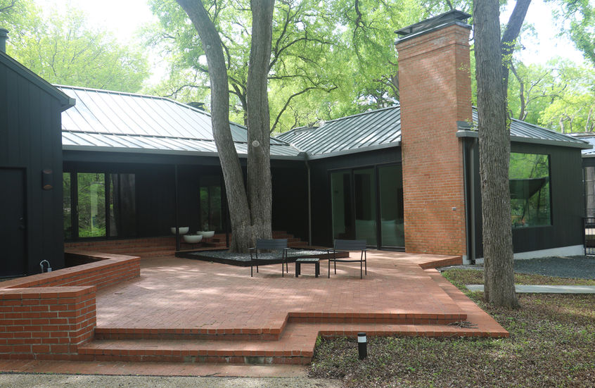 This 1940's sprawling ranch style house was completely renovated, giving it new life as a contemporary dwelling nestled into the site. bound be a cul-de-sac and creek it has now been giving new life.